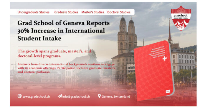 Geneva, Switzerland: GradSchool, the short form for the Graduate School of Geneva, has reported a 30 percent increase in international student intake, reflecting sustained global engagement with its academic framework and continued refinement of program delivery. The growth has been observed across undergraduate, graduate, master’s, and doctoral-level programs, highlighting broader participation from learners seeking flexible yet academically structured education pathways.