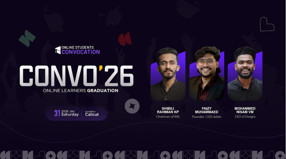 CONVO’26 will be held in Calicut, bringing together over 250 participants, including online learners from Kerala, different parts of India, and the GCC region. The event has been designed as a formal professional convocation, placing online learners on the same stage traditionally reserved for classroom-based institutions. By doing so, Adsin reinforces the belief that online education deserves equal recognition when it leads to proven results.